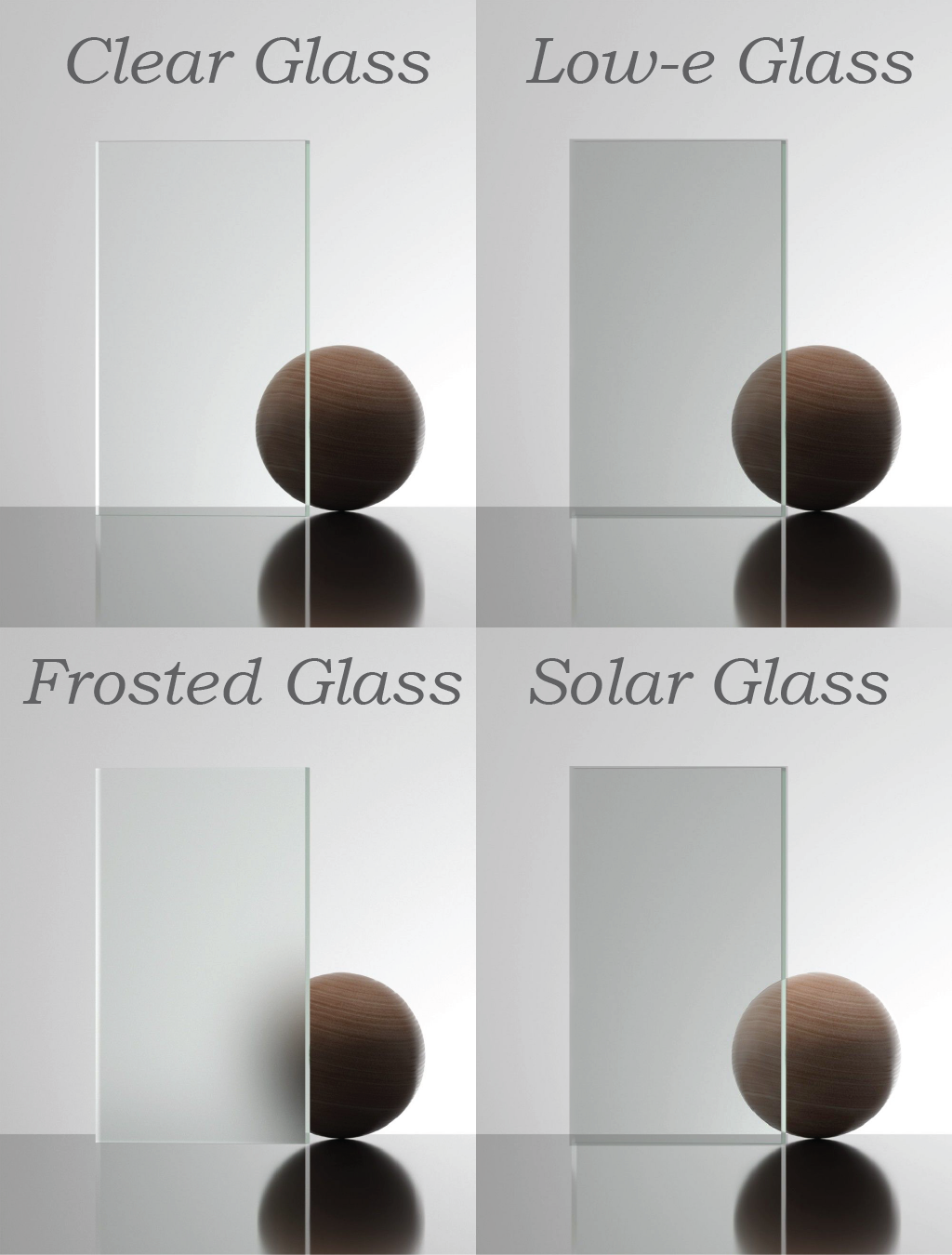 - Glass: There are many options for glass, such as :